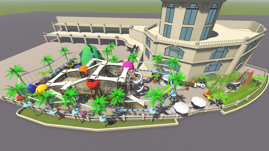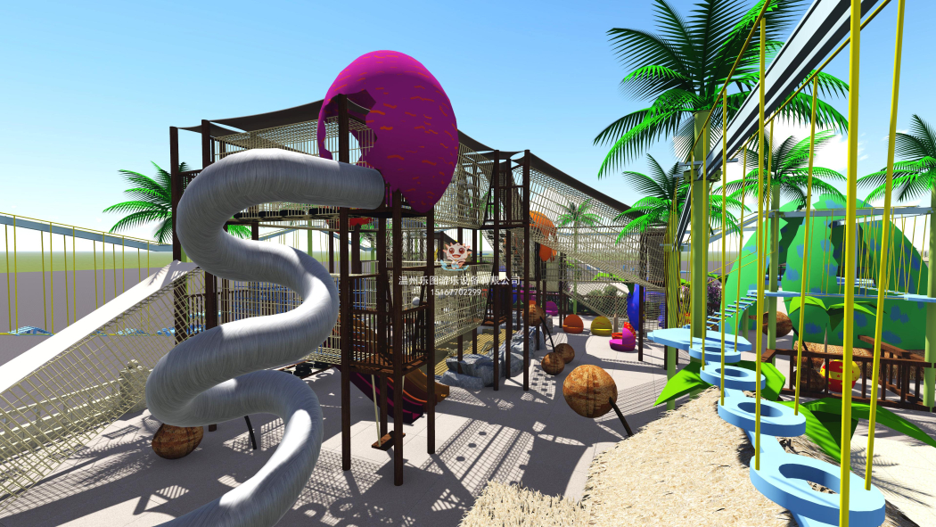 上圖便是該兒童樂園的俯視效果圖!在設計規(guī)劃階段,我們的雙方的立場便非常明確:打造貴州的侏羅紀主題兒童樂園!讓孩子走出虛擬的世界,以兒童拓展為主體檢真實的探險!