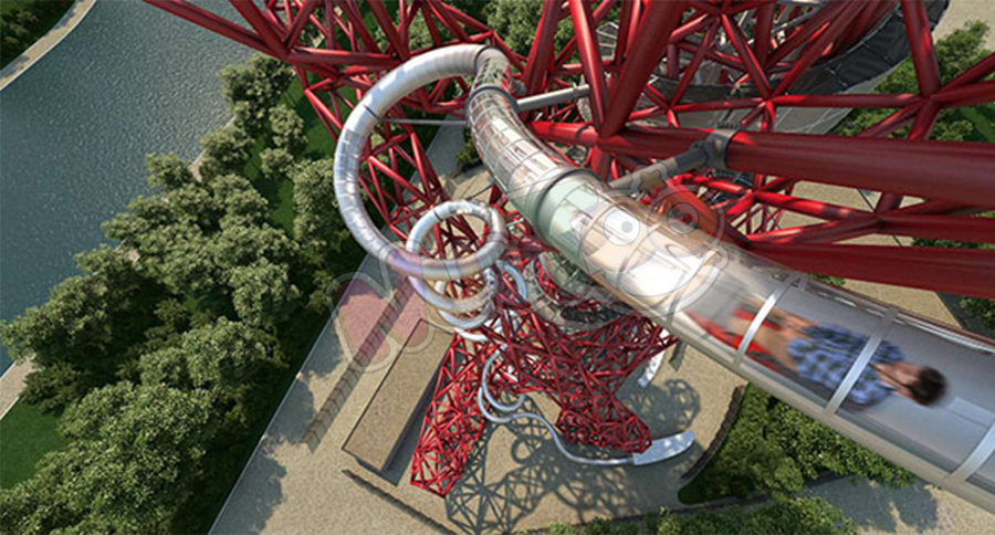 所以再2016年的年初,英國(guó)人就想了一個(gè)大膽的方法,要充分利用這個(gè)軌道塔的設(shè)計(jì)優(yōu)勢(shì),將其變成了全世界最高最長(zhǎng)的滑梯。游滑梯最重要的是滑梯的設(shè)計(jì),看它是否既夠安全又夠刺激,這樣才能吸引游客。
