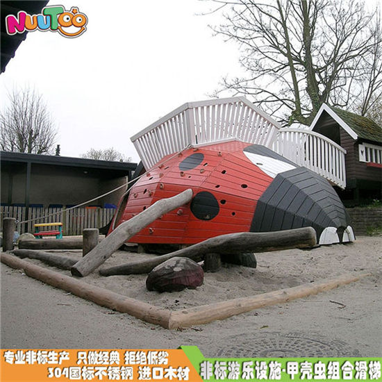 戶外非標組合類滑梯項目是按照項目外觀上的特點進行游樂項目的設(shè)計,這款甲殼蟲游樂設(shè)備在嚴格的工藝審核之下,具有著高防腐性、久用耐磨、無味涂漆的良好優(yōu)勢。其次,甲殼蟲定制昆蟲類的戶外項目都是以大自然為原型設(shè)計的項目,因而在設(shè)計上就會有比其他普通的設(shè)備下更多的功夫,從設(shè)計生產(chǎn)到產(chǎn)品的安裝運輸,每一步都是經(jīng)過了多個程序的大理。