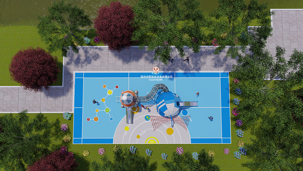 3、火箭非標(biāo)定制游樂設(shè)施項(xiàng)目環(huán)境安全,采用不銹鋼、鍍鋅管、進(jìn)口木材等材料制成,符合EN1176及國家標(biāo)準(zhǔn),在設(shè)計(jì)方案中,地面材料采用 EPDM塑膠地面,通過不同顏色的地面圖案,用故事線將場(chǎng)地各功能區(qū)串聯(lián)起來。