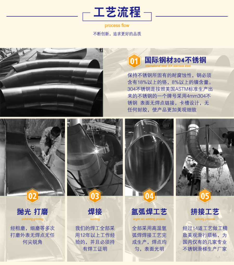 為什么市面上的不銹鋼滑梯都使用304不銹鋼!首先,什么是304不銹鋼,304不銹鋼是不銹鋼中常見的一種材質(zhì),密度為7.93 g/cm3,業(yè)內(nèi)也叫做18/8不銹鋼。耐高溫800度,具有加工性能好,韌性高的特點(diǎn),廣泛使用于戶外游樂設(shè)施和水上游樂設(shè)備和食品醫(yī)療行業(yè)。市場(chǎng)上常見的標(biāo)示方法中有06Cr19Ni10,SUS304,其中06Cr19Ni10一般表示國(guó)標(biāo)標(biāo)準(zhǔn)生產(chǎn),304一般表示ASTM標(biāo)準(zhǔn)生產(chǎn),SUS 304表示日標(biāo)標(biāo)準(zhǔn)生產(chǎn)。