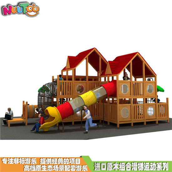 1、主材:進口黃華林+鍍鋅鋼管 3、滑梯:LLDPE(工程塑料) |