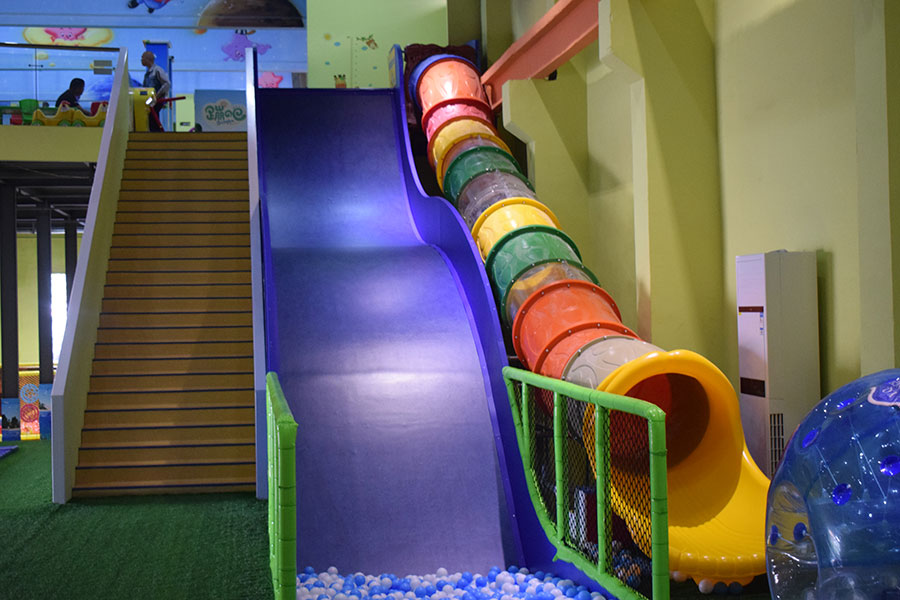 在通往魔鬼滑梯口的路程中,我們的設(shè)計(jì)師還為小盆友們準(zhǔn)備了彩虹天梯、鉆洞、蕩橋等一系列的小障礙,對于幫助小盆友克服膽小和怯懦有著重要幫助哦!