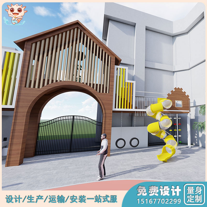 2. 安全性:如果幼兒園活動(dòng)場地有限,如何打造幼兒園趣味玩具?設(shè)計(jì)師借助場地的資源特色,合理利用空間,打造創(chuàng)意、趣味十足的小空間區(qū)域,打造幼兒園戶外大玩具。定制化幼兒園戶外游樂場首先滿足《EN1176》或《GB T 28622-2012無動(dòng)力類游樂設(shè)施》相關(guān)安全標(biāo)準(zhǔn)進(jìn)行設(shè)計(jì),有一定的運(yùn)動(dòng)及游戲設(shè)施,具有易達(dá)性、安全性、活動(dòng)空間單一等特點(diǎn),要求滿足兒童一般的戶外游戲活動(dòng)需求。