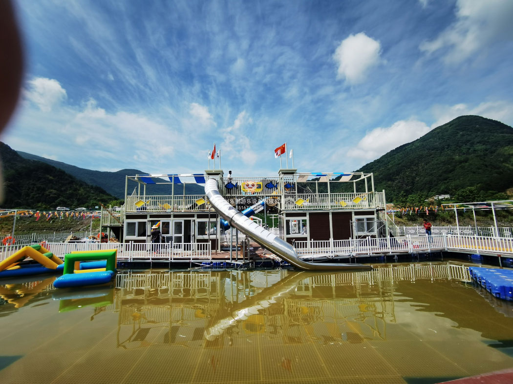 “漁趣樂園"位于湖北省咸寧市通山縣山口村,由富水湖旅游景區(qū)-期規(guī)劃項目 “漁趣樂園",該項目按照保護(hù)為主、生態(tài)開發(fā)、綠色發(fā)展"總體思路,堅持"整體布局、創(chuàng)新引領(lǐng)、前瞻設(shè)計、多元融合'原則,圍繞富水湖綜合開發(fā)總體策劃,聚力打造集漁文化展示、漁業(yè)觀光、漁業(yè)休閑、漁業(yè)科音等新型山水游樂、體驗項目于一體,有效銜接一期建設(shè)陸地與水面游線的大型網(wǎng)紅景點(diǎn)。其中娛樂板塊注重體驗,項目包含了體能拓展、網(wǎng)紅橋、互動噴泉、山地滑車、滑索、水上親子踩水車、坑爹過山車、倉鼠籠、360度自行車、趣味噴水、喊泉、大型組合滑梯等兒童游樂設(shè)備。
