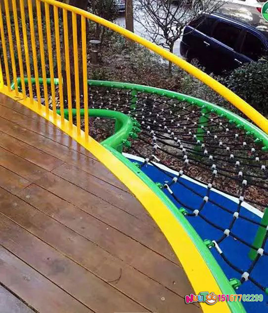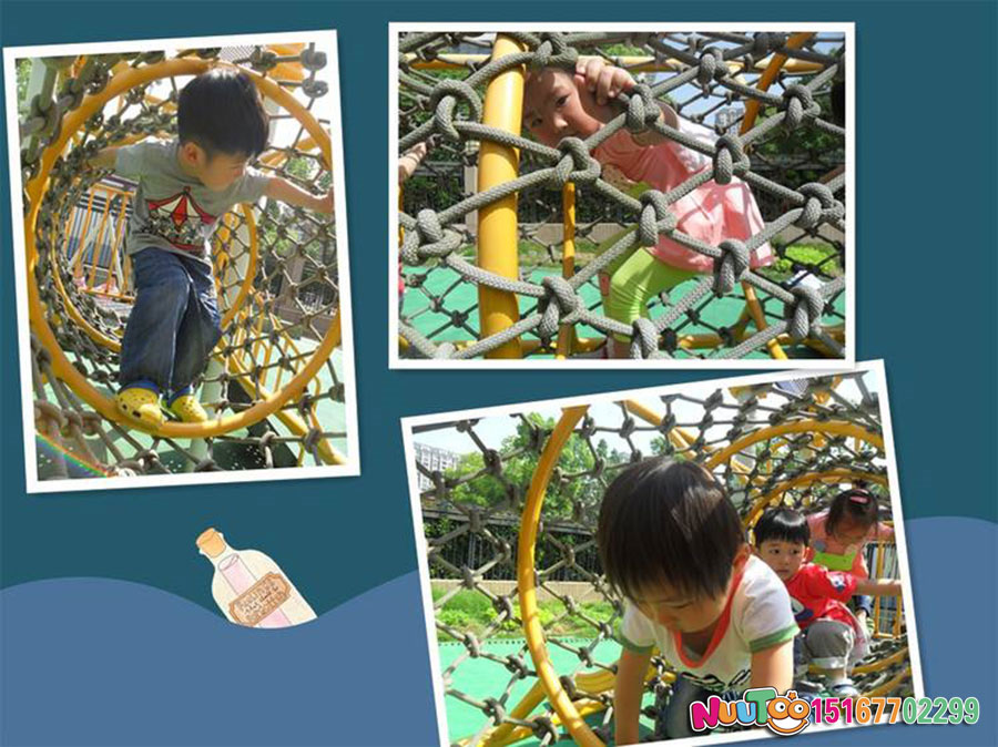 該款產品根據孩子們喜歡攀爬的天性進行的獨家設計,不僅是款式還是安全性都是較好的,并且安全性非常高,繩網的顏色可以根據場地的顏色進行定制,久用耐磨。并且我們在產品當中使用了防紫外線因子,可以使用10年以上都不會退化,不管是什么樣功能的設備均可以自由組合搭配。